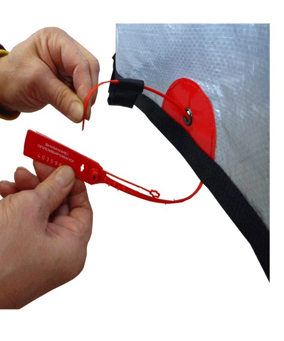 - пломбировка осуществляется одновременно через специальное отверстие-люверс - стропу стяжку- и каркас контейнера