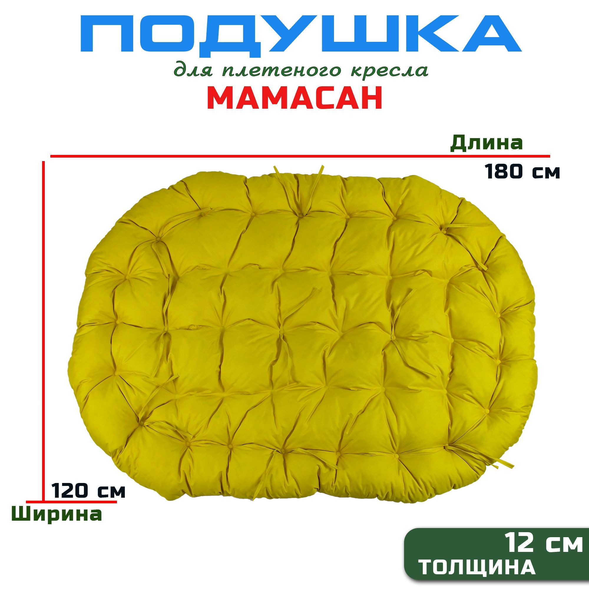 Краткое описание «Подушка для дивана Мамасан, 180х120 см, желтая (Оксфорд 600)»