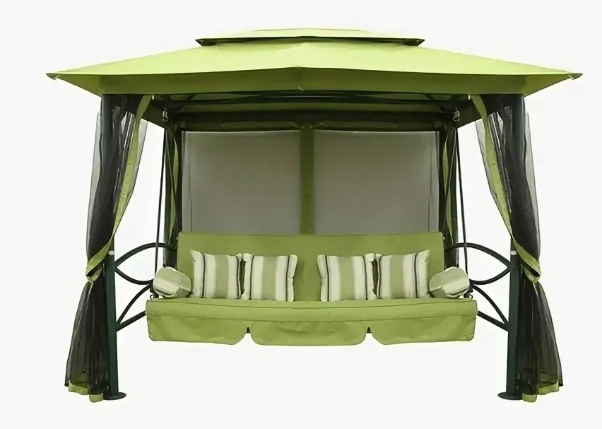 стойкостью к атмосферным воздействиям и не выгорает на солнце. Легкий в установке, тент-крыша легко крепится к шатру-качелю с помощью специальных крючков и защелок. Благодаря своей универсальной конструкции, тент-крыша подходит для большинства моделей шатров-качелей на рынке. Этот товар - отличный выбор для тех, кто хочет наслаждаться комфортным отдыхом на своей шатре-качели в любую погоду.