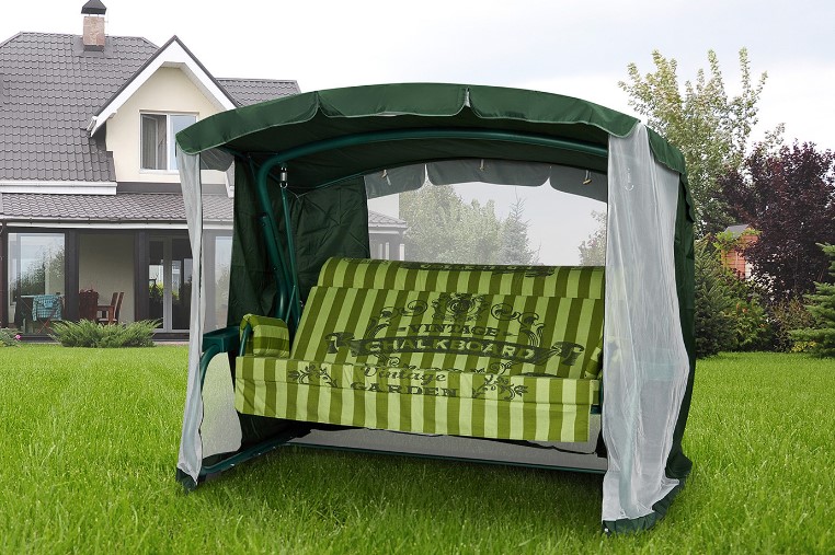 Садовые качели, которые располагаются под открытым небом, обладают огромным количеством преимуществ. Во время отдыха на них можно хорошо расслабиться, особенно это будет актуально после тяжелого напряженного дня. На мягком сидении, облокотившись на подушки, можно почитать книгу, выпить кофе или помечтать. Однако, такие моменты может сильно испортить дождь, либо же палящее солнце. Для того, чтобы этого не допустить, нужно приобрести тент, предназначенный для садовых качелей, благодаря такому тенту отдых будет более приятным и очень комфортным. Такой тент предназначен для того, чтобы защитить человека от небольшого дождя, от солнечных лучей и от насекомых в том случае, если в комплекте идёт москитная сетка. Также тканевое покрытие не будет намокать и выгорать, а качели будут защищены от опавших листьев. Такой тент отлично защищает от осадков, это очень важно, так как краска на металлических опорах может вздуваться и облезать, они сами начинают ржаветь.